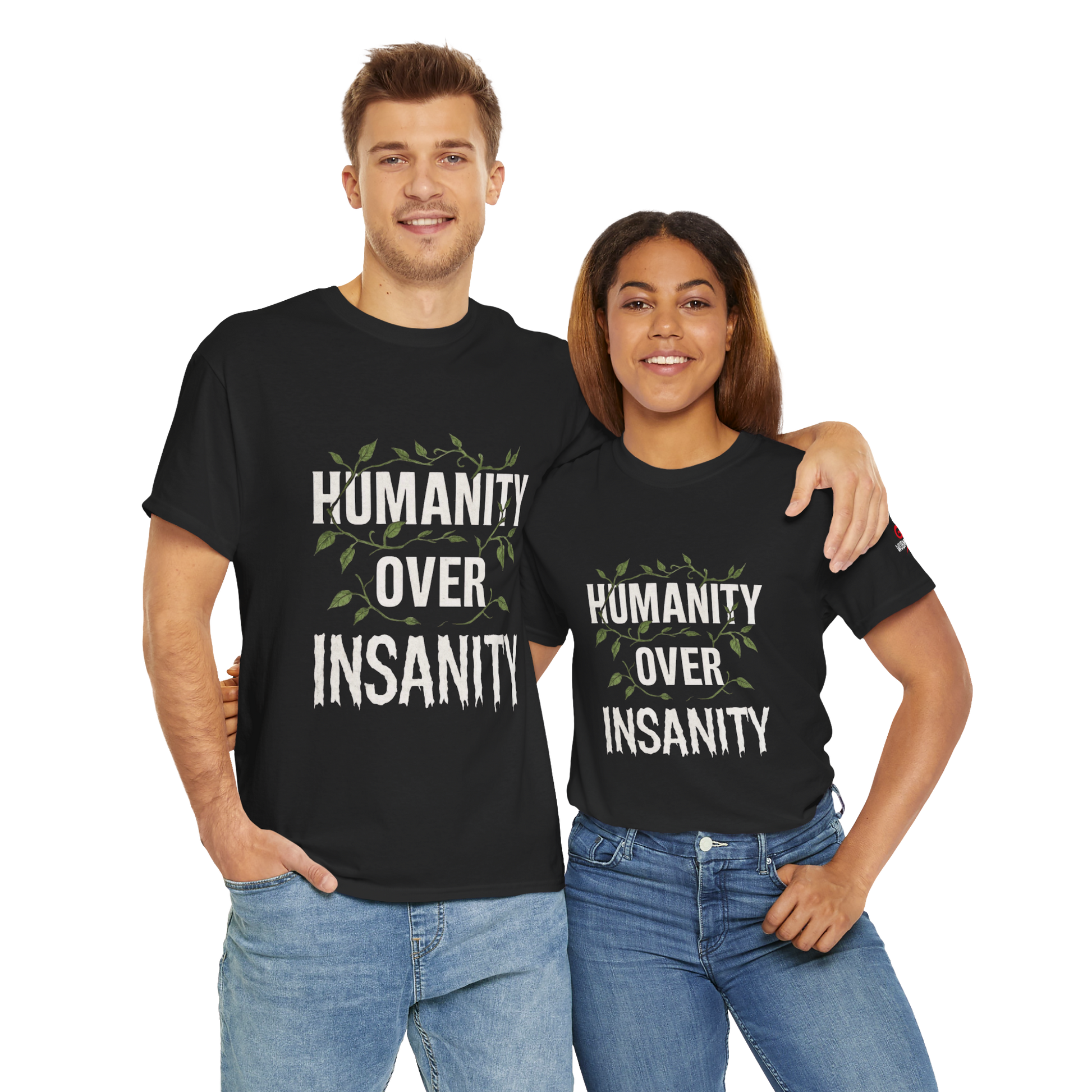Stand for something deeper with the Humanity Over Insanity 100% cotton tee. The front makes a bold statement with “HUMANITY OVER INSANITY” in crisp impact lettering, reminding the world to rise above chaos. On the back, “CHOOSE LOVE” is paired with my